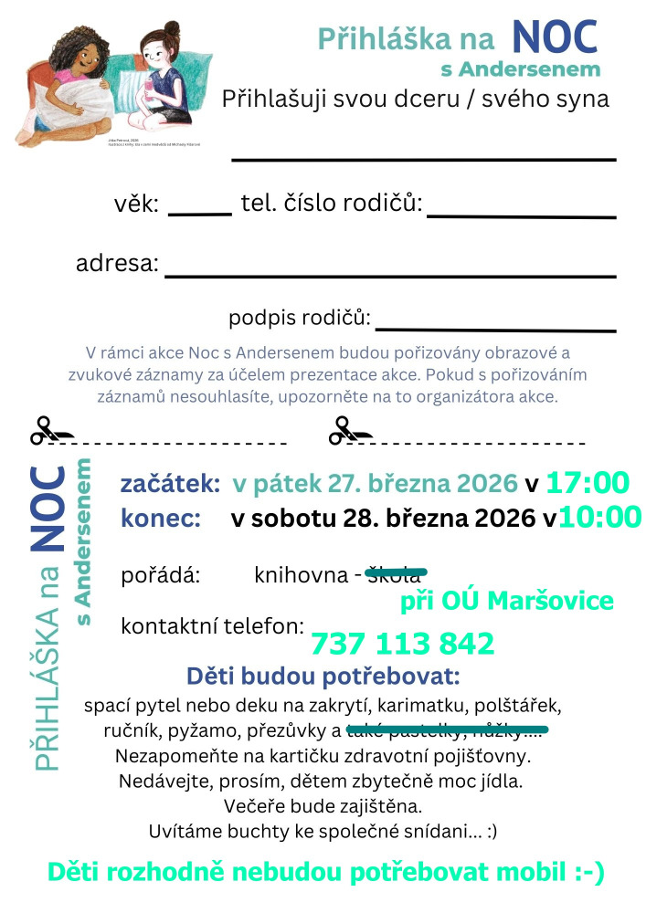 Noc s Andersenem proběhne v pátek 22.3.2024 od 17:00 hodin